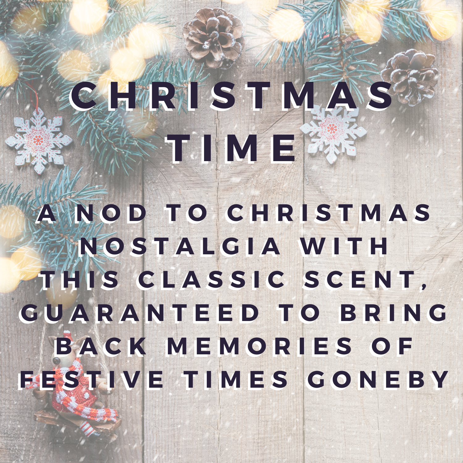 CHRISTMAS TIME - a nod to Christmas nostalgia with this classic scent, guaranteed to bring back memories of festive times goneby.