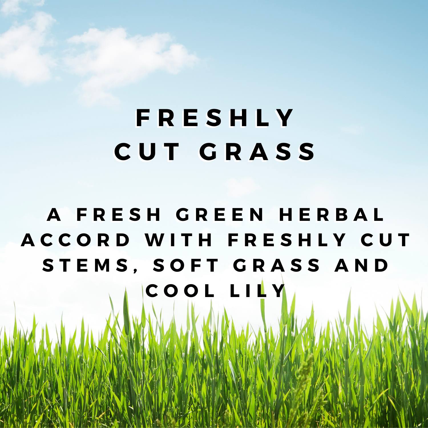 FRESHLY CUT GRASS - A fresh green herbal accord with freshly cut stems, soft grass and cool lily.